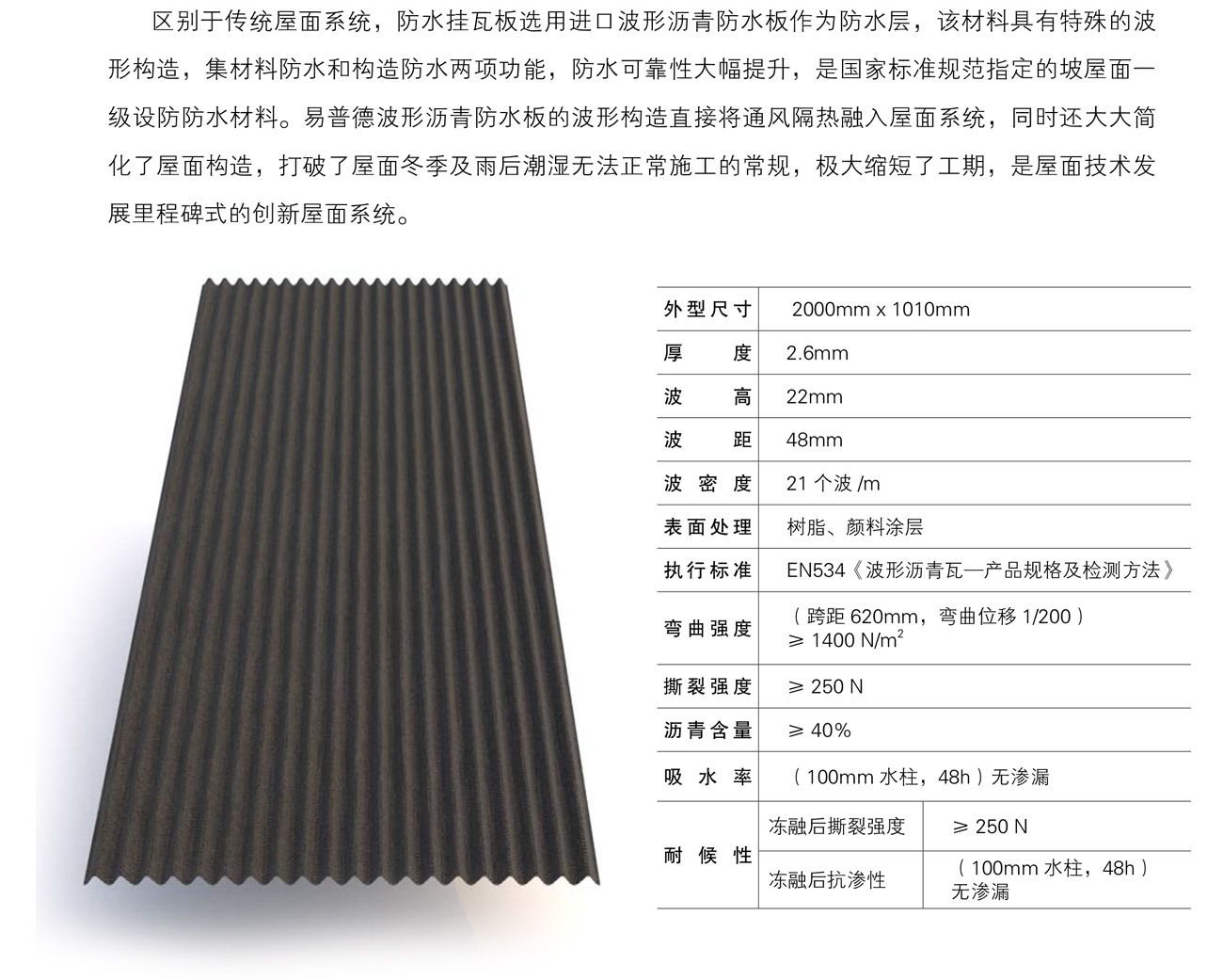 借鑒歐洲坡屋面防水理念,將平面防水改為立體防水,采用新型防水板材料,將材料防水和構(gòu)造防水于一身,配合屋面系統(tǒng)組件,實(shí)現(xiàn)全天候全干作業(yè)。節(jié)省了屋面各類保護(hù)層次,打破了屋面冬季及雨后陰濕無法施工的常規(guī),縮短了工期,提升系統(tǒng)安全性能。